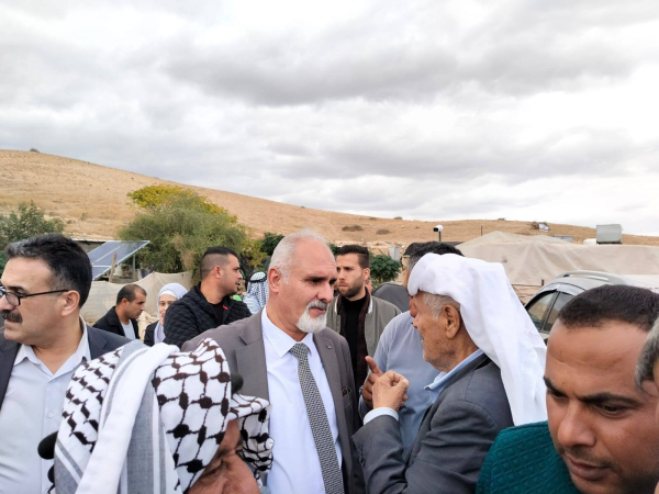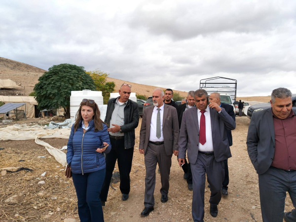 ومن ثم تم الاجتماع بمربي الثروة الحيوانية في منطقة المالح والفارسية ونبع الغزال والحمه والوقوف على احتياجات مربي الثروة الحيوانية في هذه المناطق التي تعاني من ويلات الاحتلال ومستوطنيه والذين تواجدوا إبان الزيارة وقاموا بمضايقة الوفد وساكني التجمع، حيث طالب مربي الثروة الحيوانية بتعزيز صمودهم من خلال الاعلاف والخدمات البيطرية وعدد من الاحتياجات واللوازم، حيث قام معالي الوزير بتوجيه جهات الاختصاص في الوفد المرافق بعمل اللازم فورا، وسيتم الشروع بتقديم الاعلاف والطعومات البيطرية وتخصيص طبيب بيطري في المنطقة، وقام الوزير بتسليم عدد من سكان التجمعات بحزمة من الأدوات والمعدات الخاصة بمكافحة الطفيليات وحقيبة بيطرية.